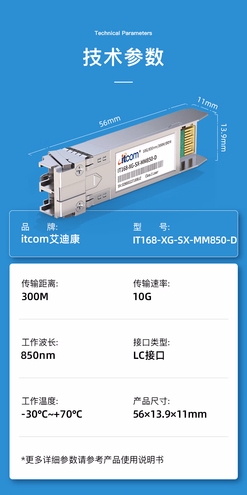 itcom万兆光模块SFP+10G多模双纤850nm 300M LC光纤模块兼容适用国产设备IT168-XG-SX-MM850-D